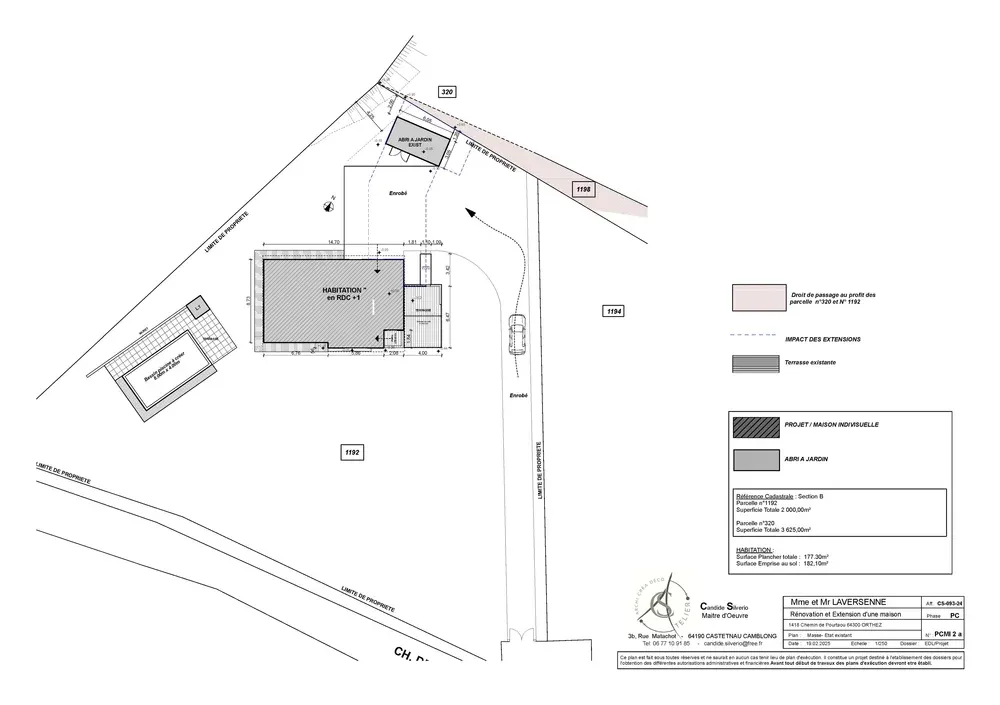 Chez Atelier CS, nous sommes fiers de vous présenter notre dernier projet d'extension d'une maison située à Orthez. Ce projet consiste à créer un garage spacieux qui viendra relier la maison principale à l'abri de jardin existant. Cette extension ne se contente pas d'ajouter un espace fonctionnel, mais elle contribue également à renforcer l'architecture globale de la maison, créant ainsi une harmonie visuelle et structurelle.